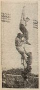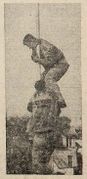 The idea for a grease pole climb apparently came to the Queen's engineering orientation committee from one of its organizers and originated in an old high school tradition.[33] According to those present at the 1955 Varsity Stadium football game and the first grease pole climb of 1956, the first grease pole used in 1956 was not from the goalposts from Varsity Stadium at all, but was a taller pole with a narrowing top.[33] This is likely accurate, since Queen's was not in possession of the Varsity Stadium goalposts in the fall of 1956 as they were taken by Western students within a week of Queen's theft and returned to Varsity Stadium in November of 1955. The Queen's Journal, which extensively reported on the goalpost incident in 1955, did not in its 1956 article about the first grease pole climb at all mention the provenance of the pole, although the photograph accompanying the article is not conclusive of the matter.[32]