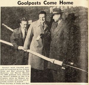 - ↑ "Goalposts Come Home". The Varsity (November 7, 1955), p. 8. (Archived)
